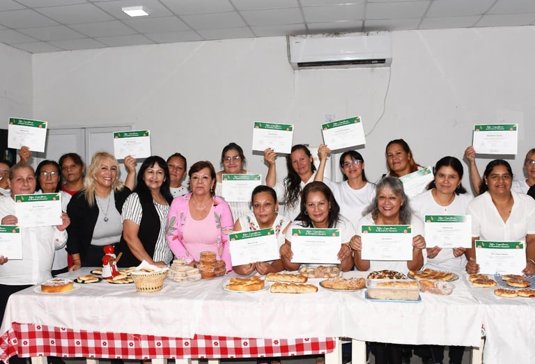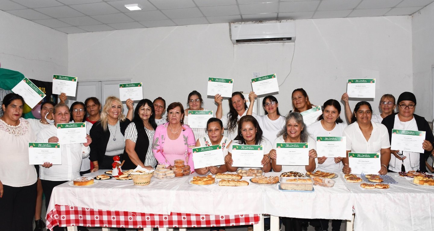 [14/04/2026] - El Centro Comunitario Municipal del barrio Santa Rita fue escenario de la entrega de certificados de un nuevo curso gratuito de pastelería y repostería. Con el apoyo comunal, esta capacitación benefició a 30 personas, que les significa la posibilidad de una salida laboral importante.