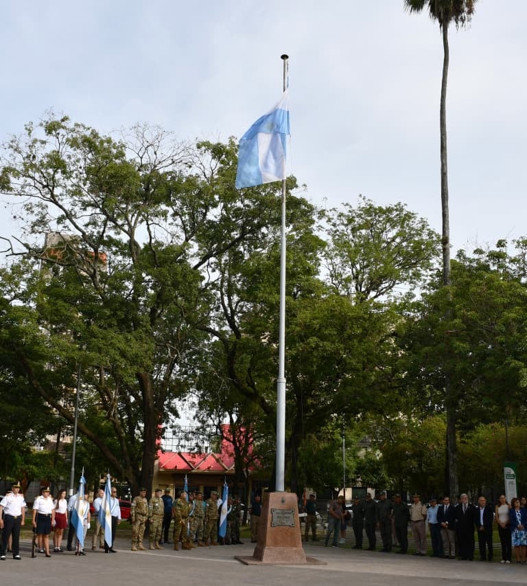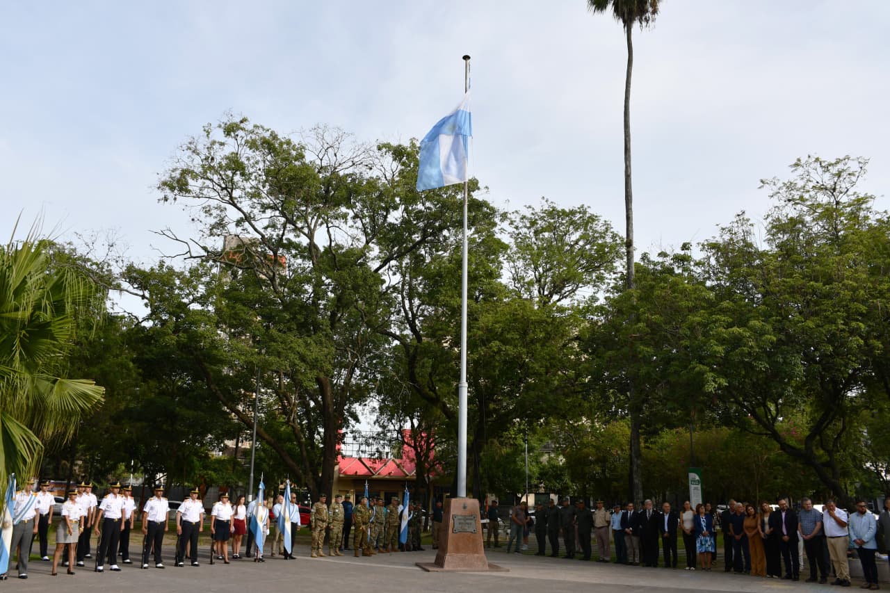 Del homenaje, que se realizó en la Plaza Belgrano, formaron parte funcionarios municipales, provinciales y miembros de las fuerzas de seguridad pública.