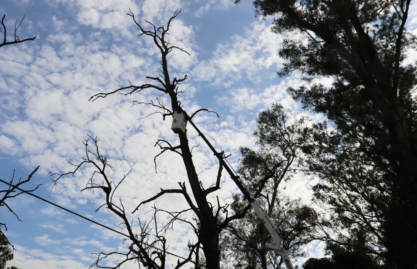 Los ejemplares sobre los que trabajó tenían alrededor de 25 metros de altura y constituían un riesgo para los vecinos que viven sobre calle Saavedra podían caer sobre sus casas y causar daños.