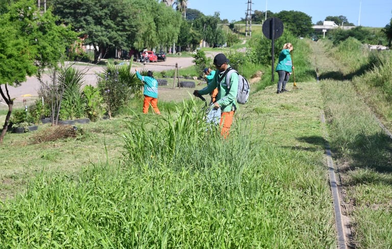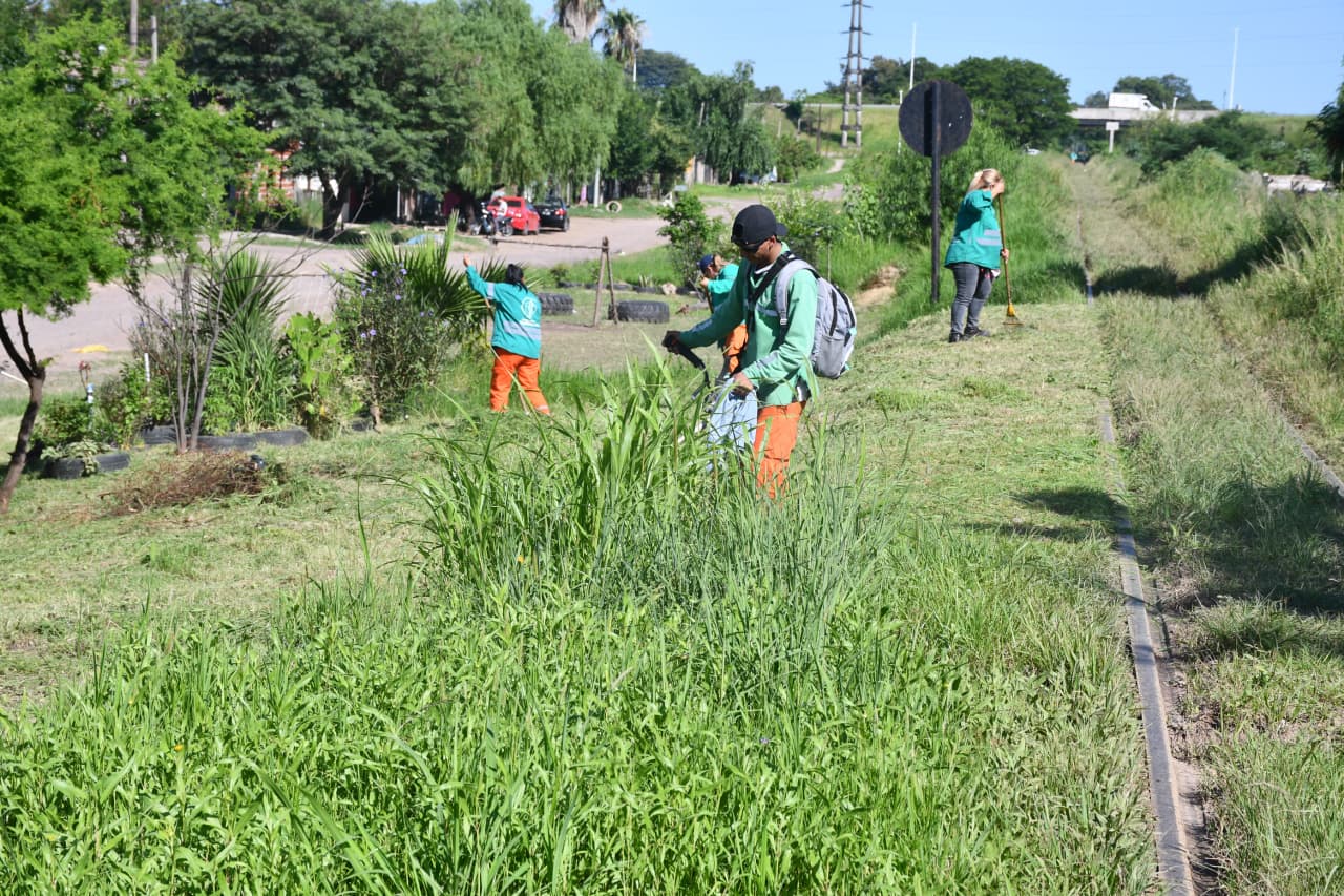 Valeria Prieto, encargada de la intervención, explicó que “estamos haciendo tareas de desmalezado, siguiendo con acopio de basura, arrancamos del 800 de la avenida Moreno y tenemos que llegar a la ruta 11”.