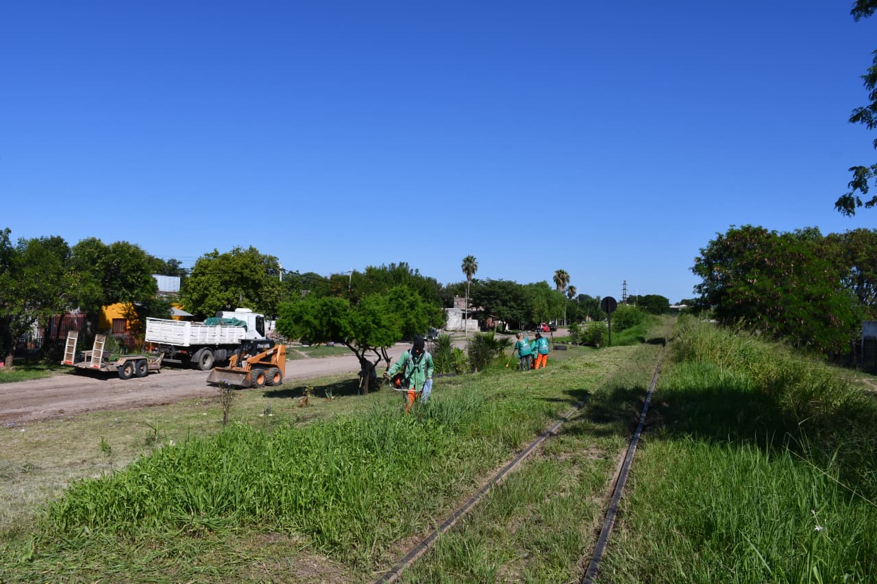 [14/01/2026] - La Municipalidad de Resistencia realiza un amplio trabajo de desmalezado y limpieza en la avenida Moreno, desde la altura del 800 hasta la ruta nacional 11. El vasto sector por donde se encuentran las vías del ferrocarril, estaba con malezas altas que perjudicaban la visibilidad y eran foco para la presencia masiva de insectos.