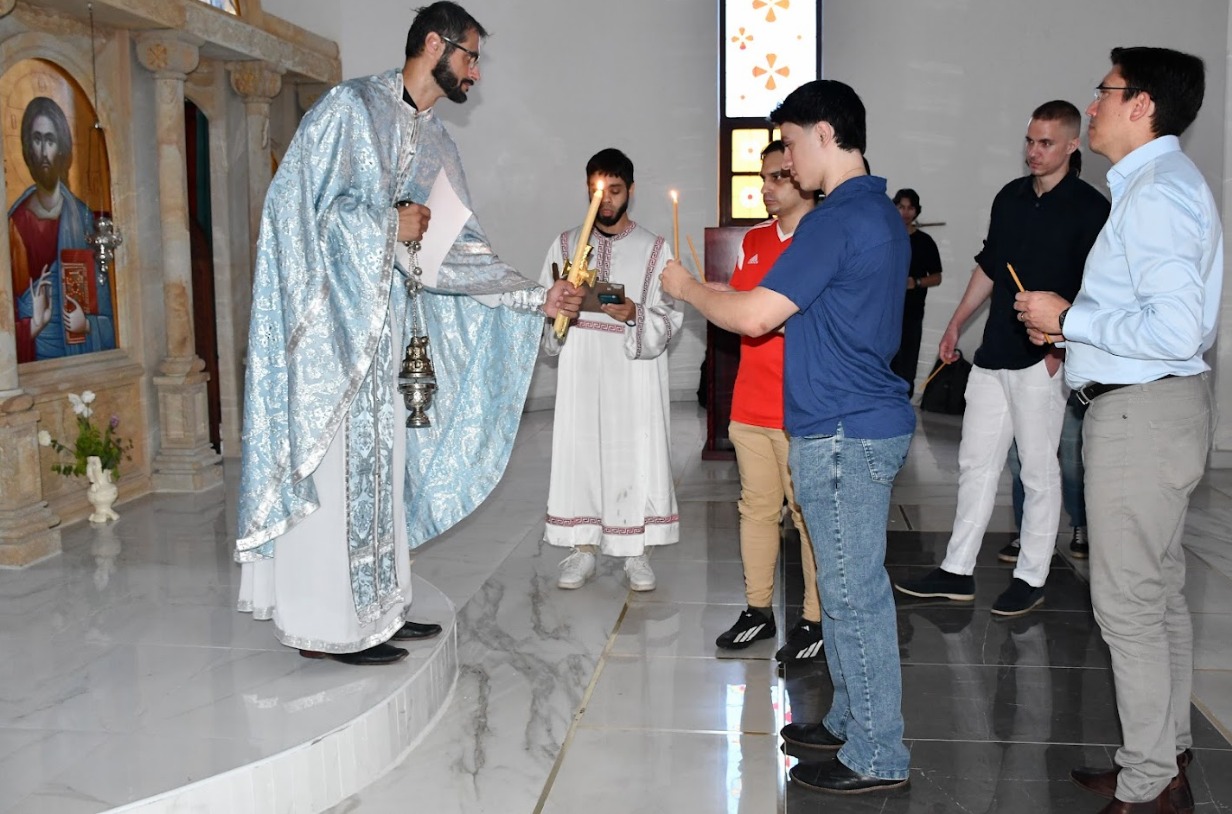 Esta celebración consistió en dar tres vueltas sobre el Templo de la Santa Trinidad, y luego seguir la liturgia en el interior.