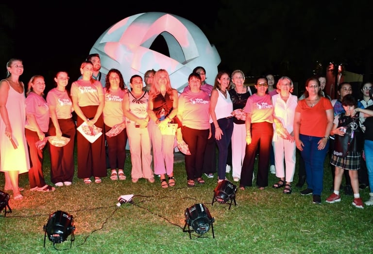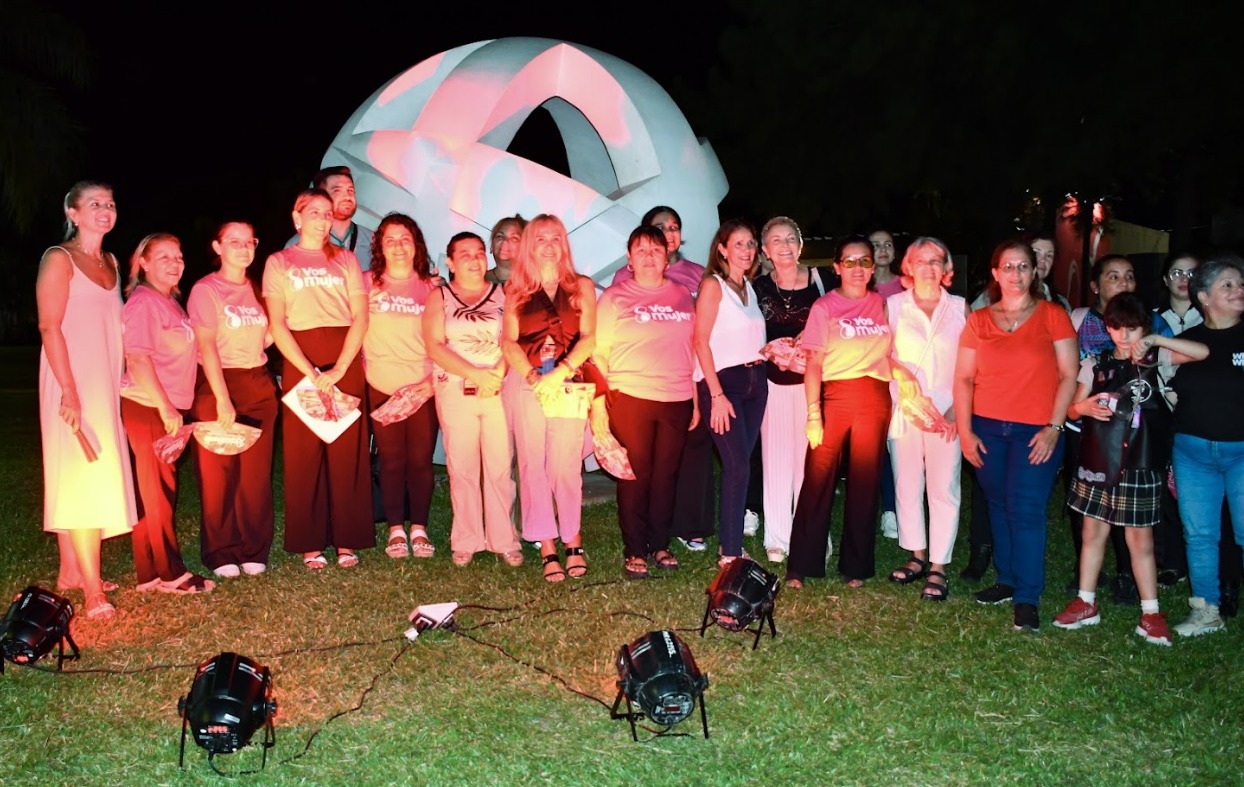 [29/03/2026] - Cómo parte de las actividades por el cierre del Mes de la Mujer, la Municipalidad de Resistencia, en un breve acto, iluminó de rojo una escultura emplazada en el espacio verde de ingreso al Domo del Centenario.