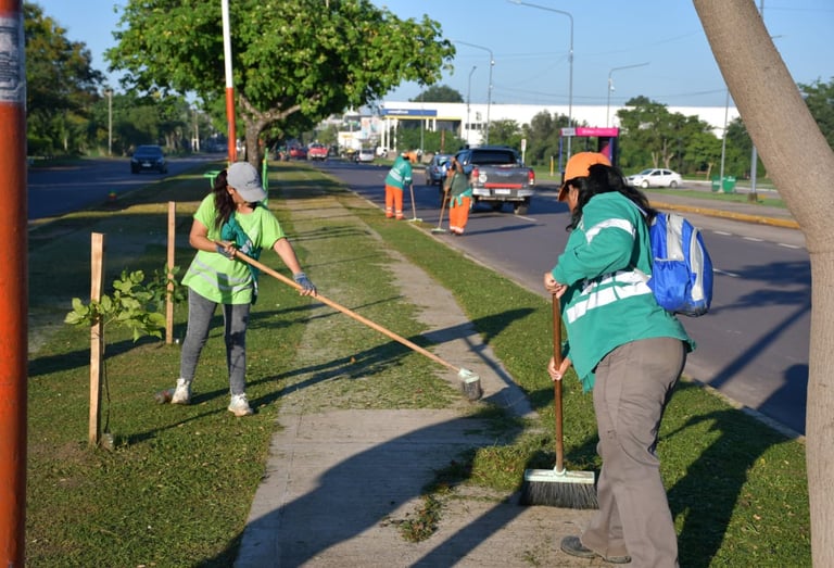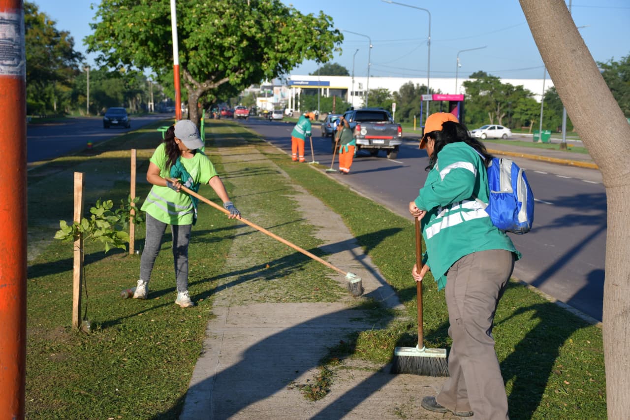 [18/04/2026] - La Municipalidad de Resistencia ejecutó un operativo de limpieza y mantenimiento en los canteros centrales de avenida Sarmiento, que incluye corte de pasto, barrido y recolección de restos verdes.