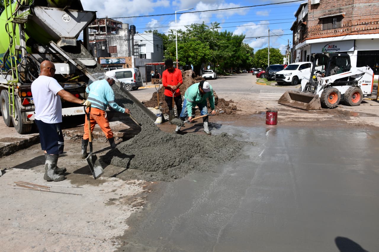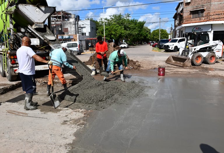 Se hizo una reparación mínima en un pozo de más de 2 metros de profundidad y se lo volvió a tapar con tierra, compactándolo, para luego colocar material RDC, que es el relleno de densidad controlada hasta la altura del hormigón. Para finalizar, personal municipal procedió al hormigonado Fast Track, de fraguado rápido, trabajo que fue ejecutado por 10 operarios y equipos viales municipales, como ser una retroexcavadora con martillo neumático y una minicargadora.